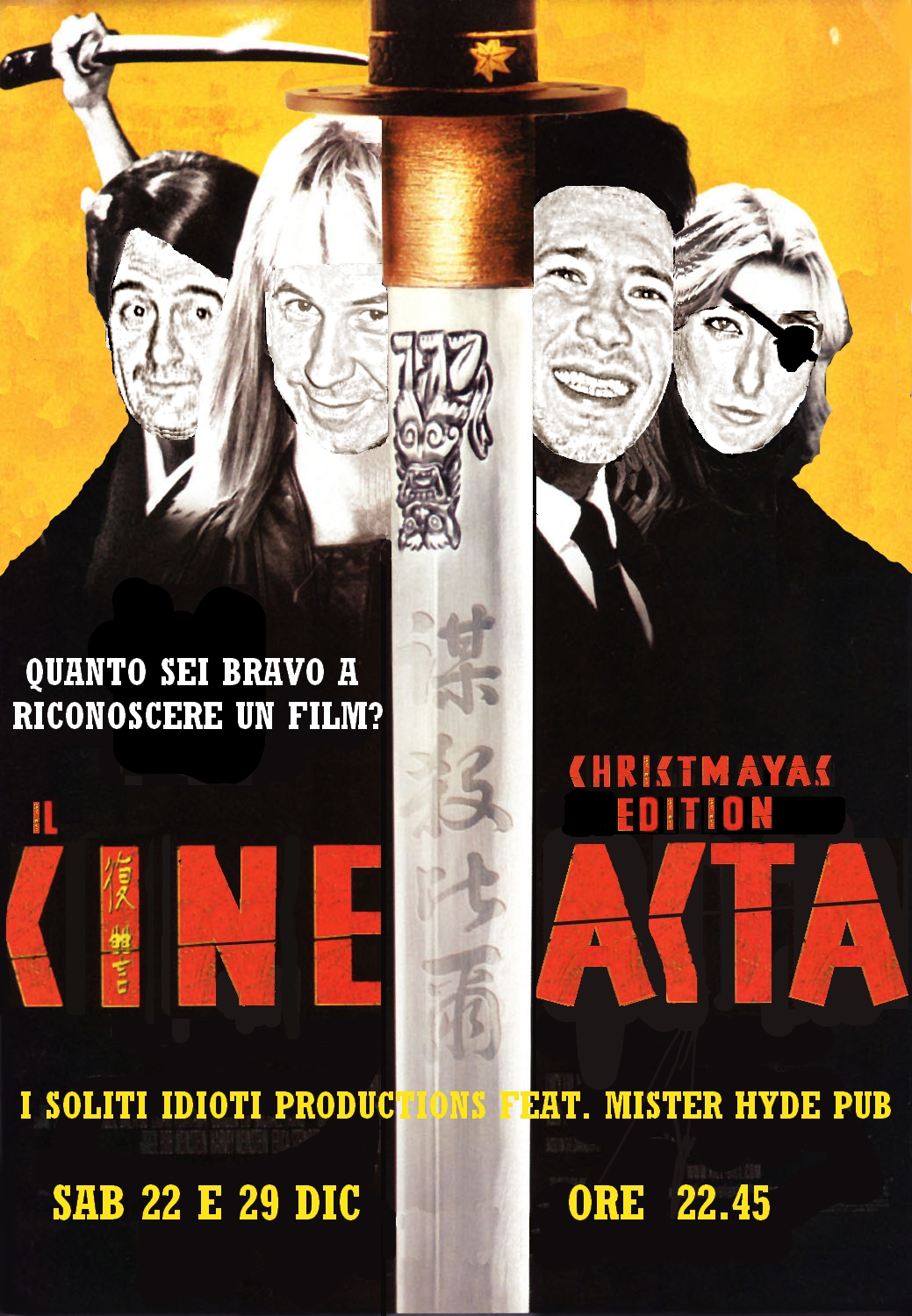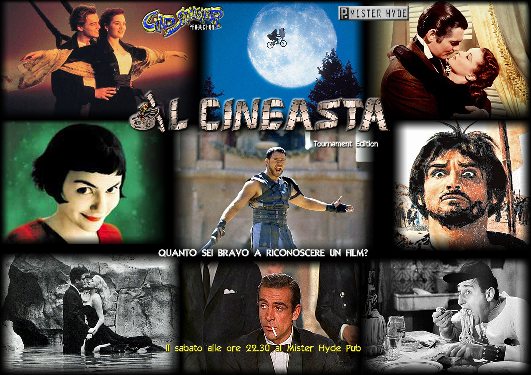 La locandina del primo torneo ufficiale del Cineasta al Mister Hyde pub (febbraio-marzo 2013). Composione da immagini di vari film.